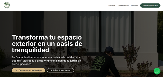 Sitio profesional enfocado en transformar espacios exteriores con diseño elegante y llamadas a la acción claras